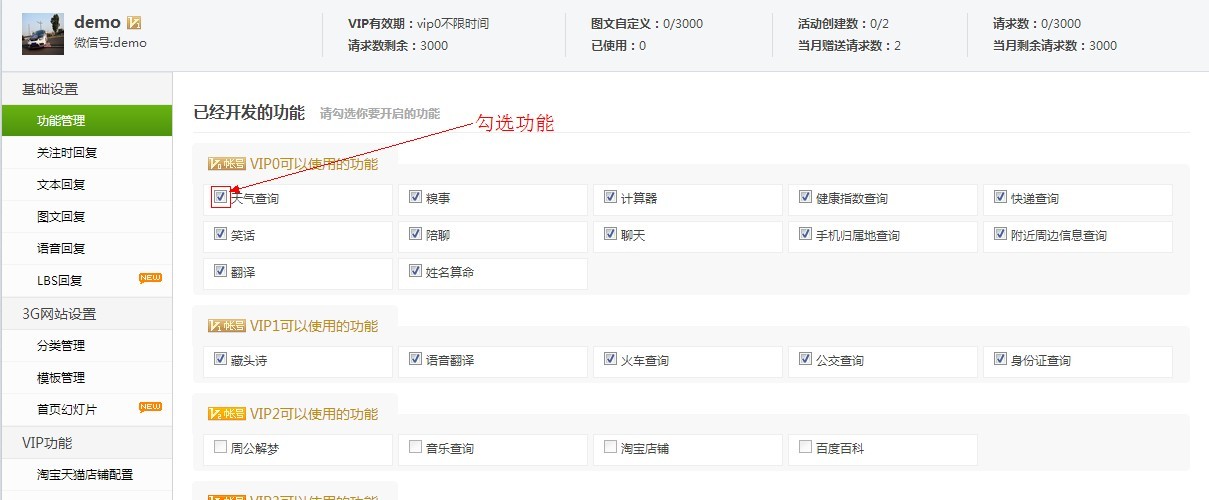 4、在手机上用微信给你的公众号输入"帮助",如果能接收到信息就接入成功,否则请按照以上步骤重新配置